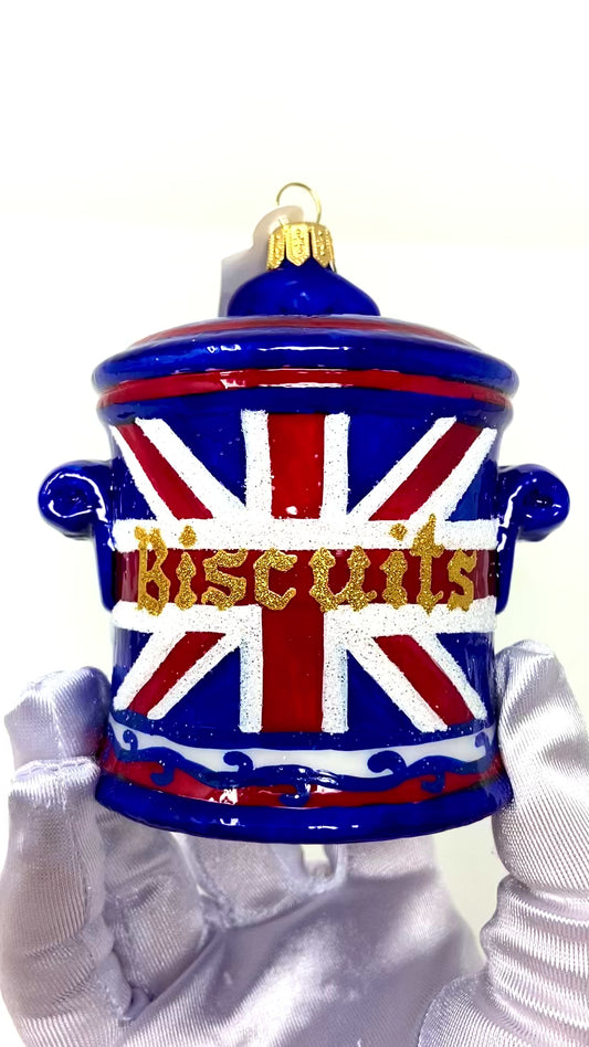 Union Jack Tea Biscuit Jar Polish Glass Ornament