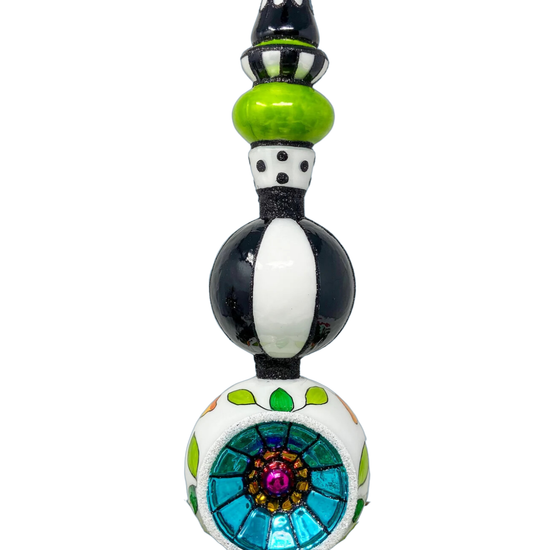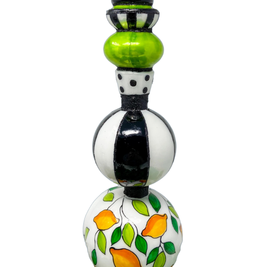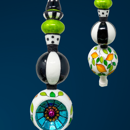 Like a citrus grove kissed by couture, this hand-blown topper is part fruit stall, part fashion house. With bold black-and-white banding, a juicy swirl of lemons, and a turquoise reflector that glows like the Amalfi coast at noon, it’s a Mediterranean daydream perched at the peak of your tree.