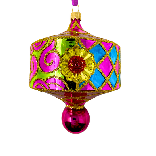 With diamond-pink shimmer and a reflector that catches the light like a flashbulb at a premiere, this ornament channels the golden days of Hollywood mischief. It's the kind of glitz you’d expect at a garden party in satin heels—where palm trees sway, the cocktails are cold, and everything feels just a little more fabulous.