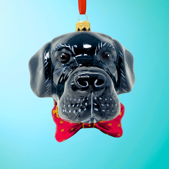 Sleek midnight black, polished to perfection, with a scarlet bow as the finishing touch—this Labrador is the epitome of refined devotion. The soft gleam of his coat, the careful arch of his brows, the ever-watchful gaze—every detail hand-painted, every feature capturing the unwavering loyalty of man’s best friend.