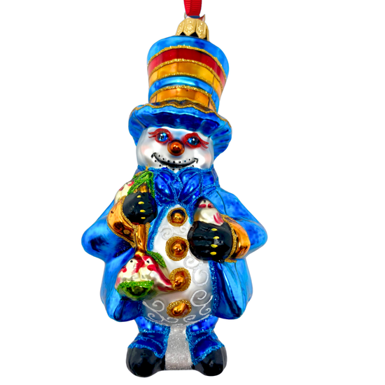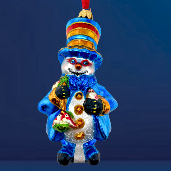 Decked in cobalt velvet and circus gold, Blue Christmas isn’t here to sing ballads—he’s here to steal the spotlight. Equal parts pageantry and peppermint, he dances through the season with a wink, a grin, and a flair for the fabulous.