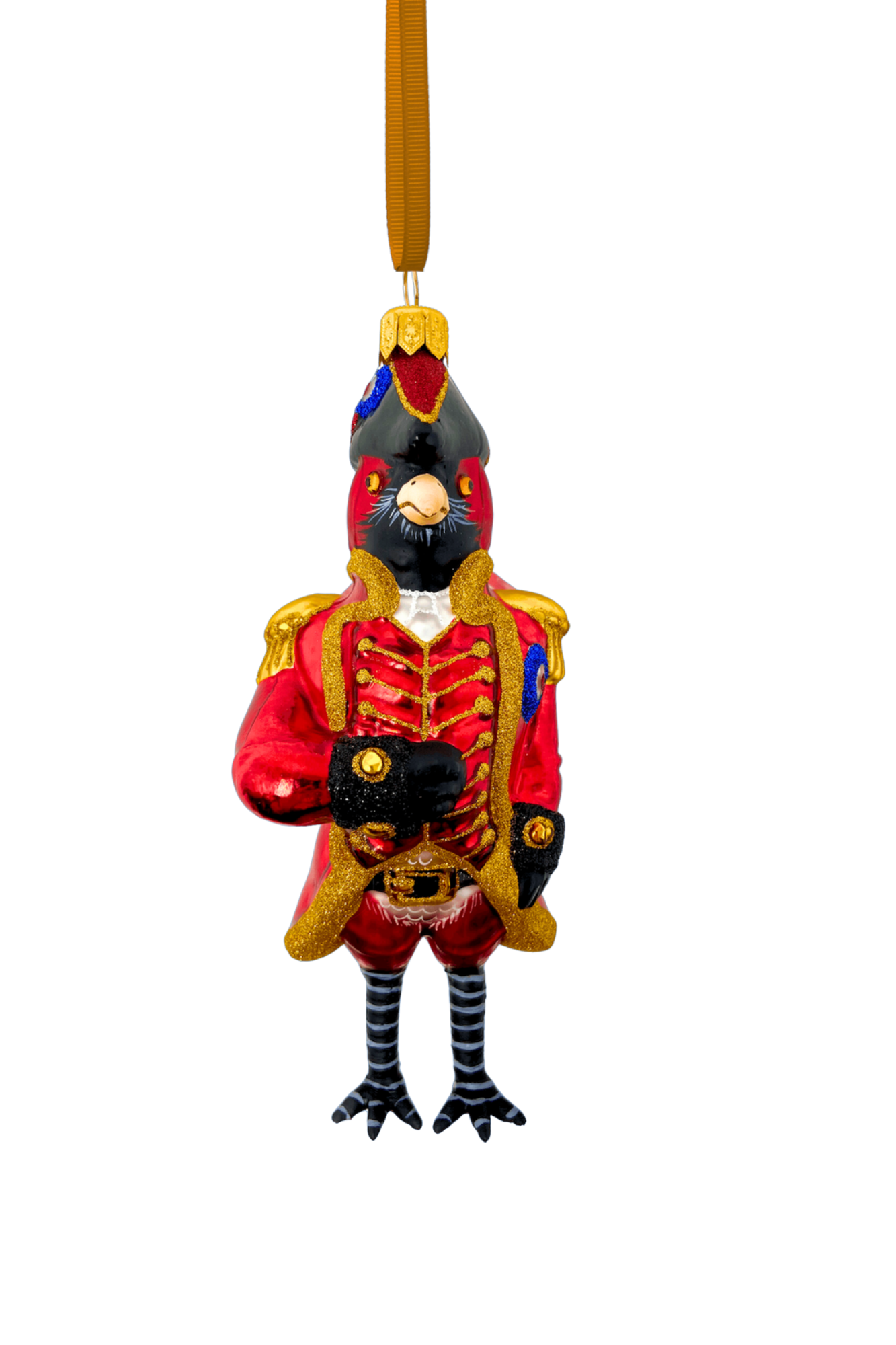 This dashing cardinal dons his crimson regalia with gusto, each golden detail stitched in defiance of dull traditions. A velvet-trimmed coat, a powdered wig of feathers, and a stance that says, “Come at me, winter.”