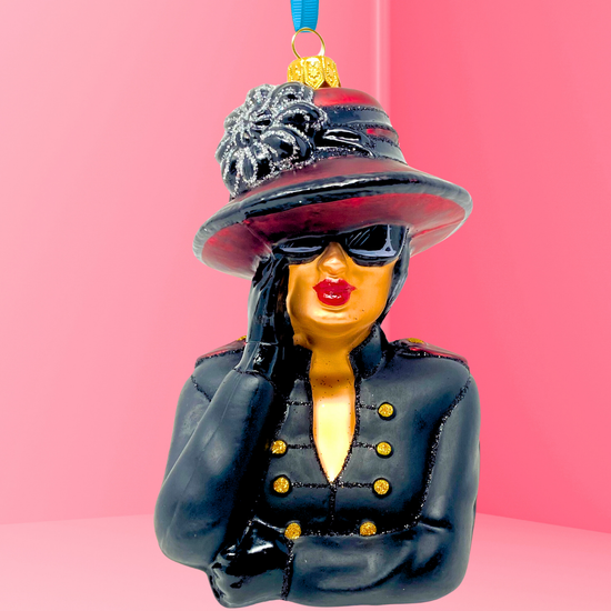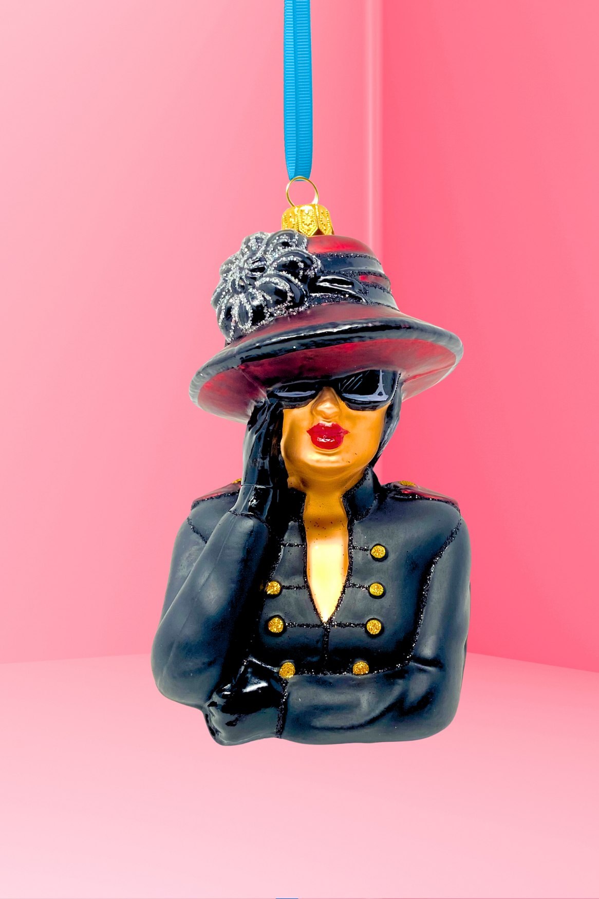 Dripping in quiet luxury, the Coco Black ornament embodies the woman who commands attention without saying a word. Dressed in a structured black coat with military-inspired gold buttons and a sweeping hat adorned with a glittering brooch, she is the epitome of elegance and strength. She doesn't chase trends—she defines them.