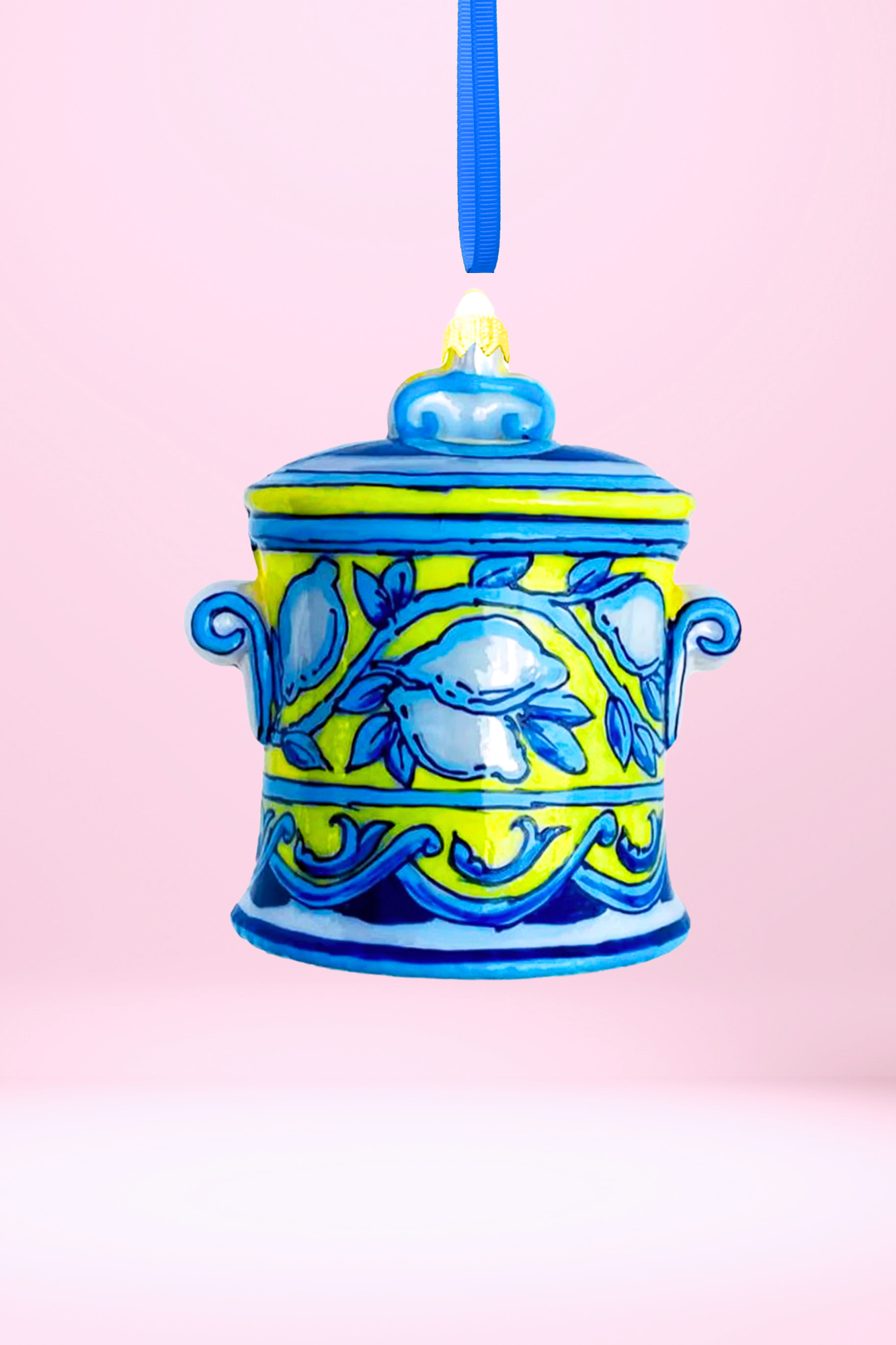 The Columbo Cookie Jar Ornament is a vision of Amalfi-inspired artistry—swirling azure and citrus hues intertwined in a design that exudes warmth and sophistication. A symbol of gatherings, laughter, and biscotti dipped in golden honey, this piece belongs at the heart of every holiday tradition.