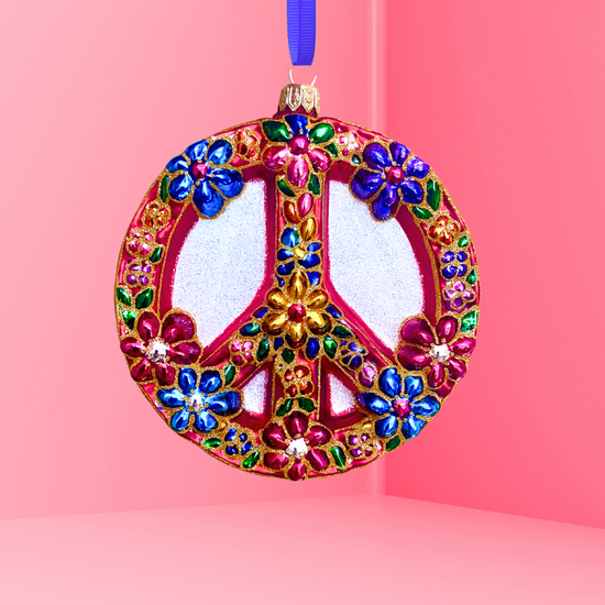 Peace Sign Polish Glass Ornament (Floral Side)