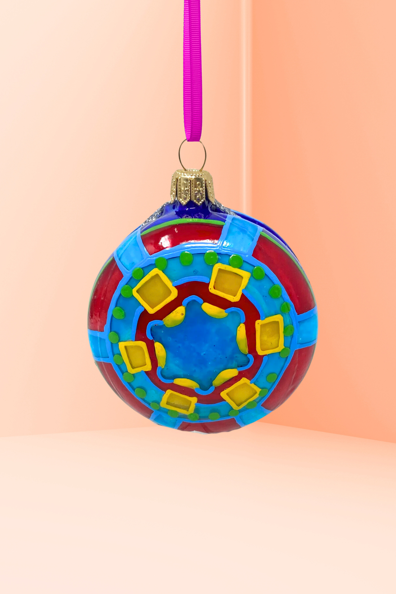 A playful reverie wrapped in the nostalgia of childhood, this hand-blown glass yo-yo transforms movement into an art form. Vivid reds, regal blues, and bright yellows dance together in a kaleidoscope of color, evoking the wonder of a world seen through youthful eyes. A jewel of sentimentality and style.