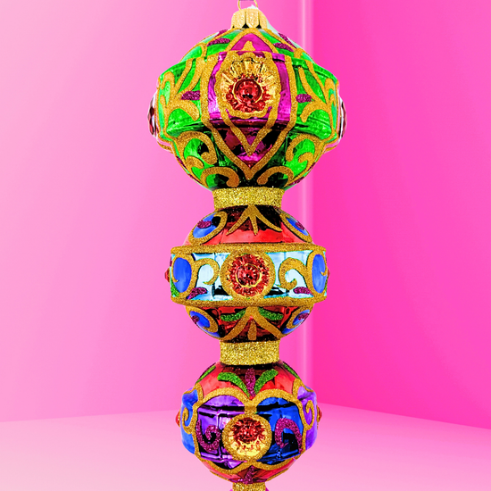 Layers of bold Sicilian hues burst forth in a dazzling display of artistry, where swirling filigree and rich gemstone embellishments dance across a sculpted form. Inspired by Italy’s most opulent festivals, this ornament is a tribute to maximalism at its finest—where more is more, and every detail tells a story of luxury.