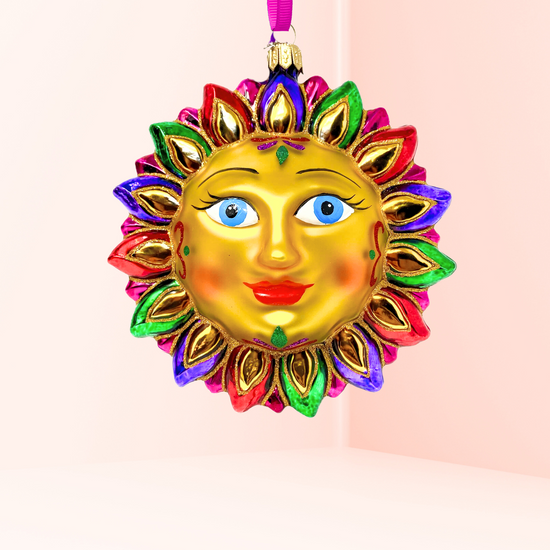 Bathed in the golden glow of an endless summer, this ornament is the embodiment of warmth itself. The soft shimmer of sun-kissed sands and the smooth curves of a celestial face create a moment of serenity—like the last light of day stretched across an untouched horizon.