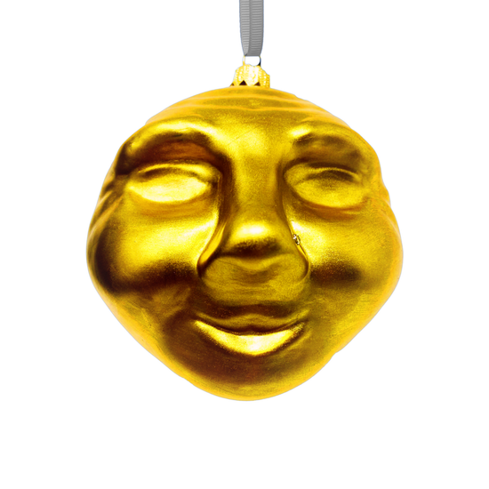 Softly sculpted and aglow with celestial wonder, this gilded moon smiles with quiet confidence. An enigmatic face caught between sleep and wakefulness, wrapped in the golden hush of midnight. It is a reminder of whispered wishes and cosmic serendipity—forever watching, forever waiting.