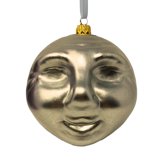 Softly sculpted and aglow with celestial wonder, this gilded moon smiles with quiet confidence. An enigmatic face caught between sleep and wakefulness, wrapped in the golden hush of midnight. It is a reminder of whispered wishes and cosmic serendipity—forever watching, forever waiting.