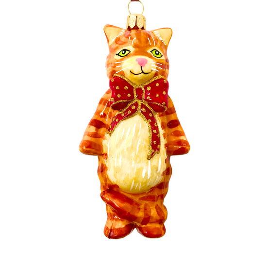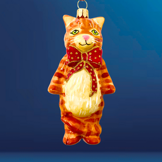 With the coloring of a cinnamon roll and the confidence of a lion, this striped gent is a warm mug of holiday charm. His bow’s a bit off-center—just like his sense of humor—and his spirit? Pure festive mischief, wrapped in fur.
