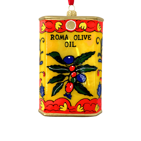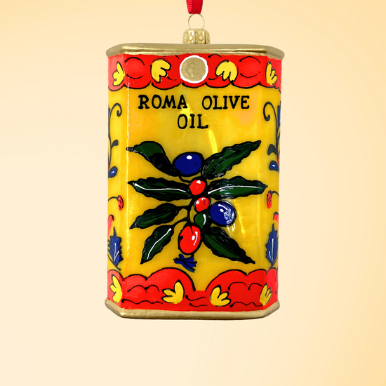 Bright as an Italian summer and twice as flavorful. This golden can ornament channels the essence of a well-stocked cucina: vibrant, authentic, and impossible to ignore. A love letter to olive oil—and the hands that pour it.