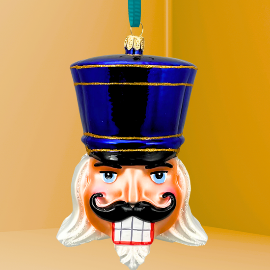 Dressed in a rich sapphire blue, trimmed with delicate gold, this nutcracker is the epitome of seasonal luxury. His poised expression and structured form mirror the refinement of a bygone era, reimagined for the modern collector. This is a statement piece—one that speaks the language of timeless elegance.