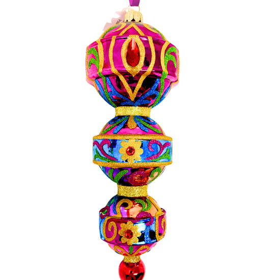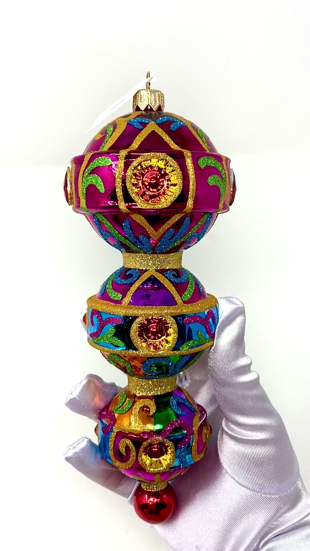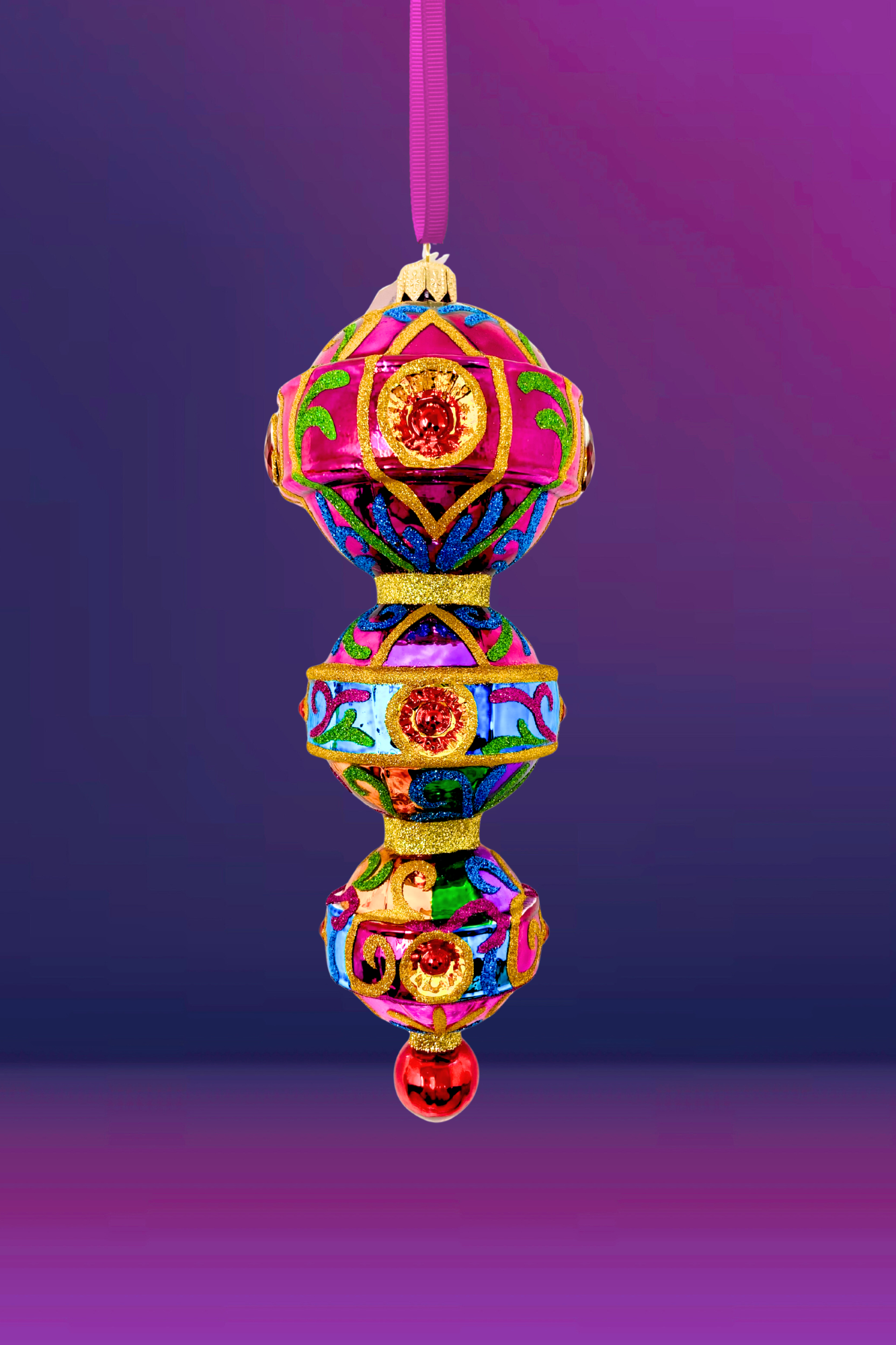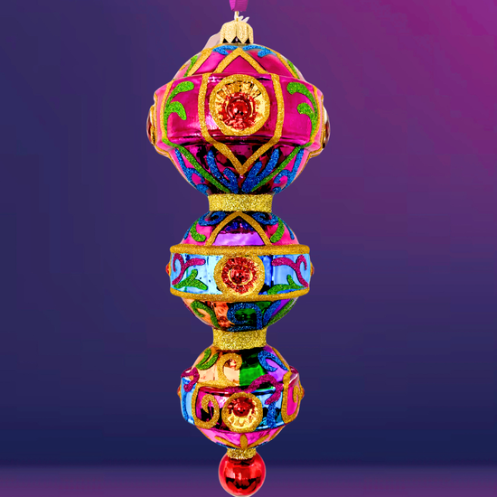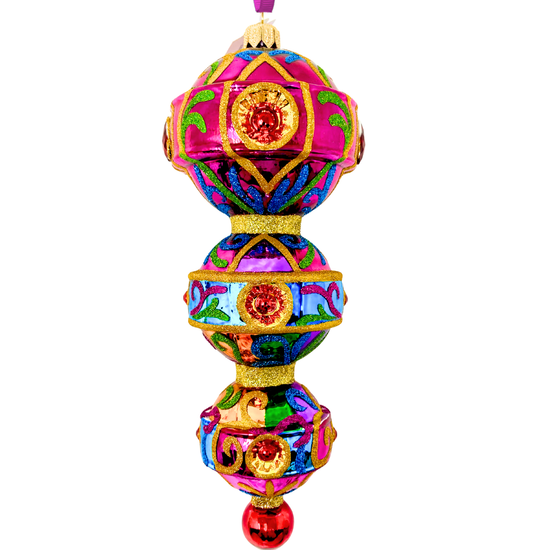 Three radiant tiers of color meet in this luminous piece inspired by the brilliance of coastal Italy. From coral to emerald to sapphire, every hue feels kissed by the Mediterranean sun. It’s the ornament version of a seaside aria.