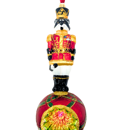 This feline general is suited up in full dress regalia—epaulettes, medals, and a reflector orb base—standing tall to protect the season’s sparkle with a feline smirk.